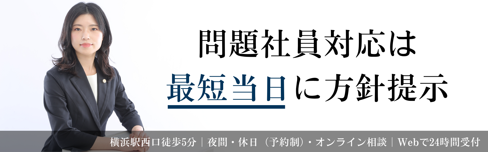 問題社員と見られる従業員がいる場合、経営層/管理職層は、なにから対処すればよいか、どのように対処すればよいか、あらゆる面で不安を抱えているケースをこれまで数多く目にしてきました。問題社員対応は一歩間違えますと、会社を窮地に陥れる可能性があります。しかしながら、適切に対処すれば、スピーディーかつ後に尾を引くようなことなく解決できます。まずは問題社員対応の経験豊富な弁護士にご相談いただき(初回相談1時間無料)、その悩み/ストレスから一日も早く抜け出してください。